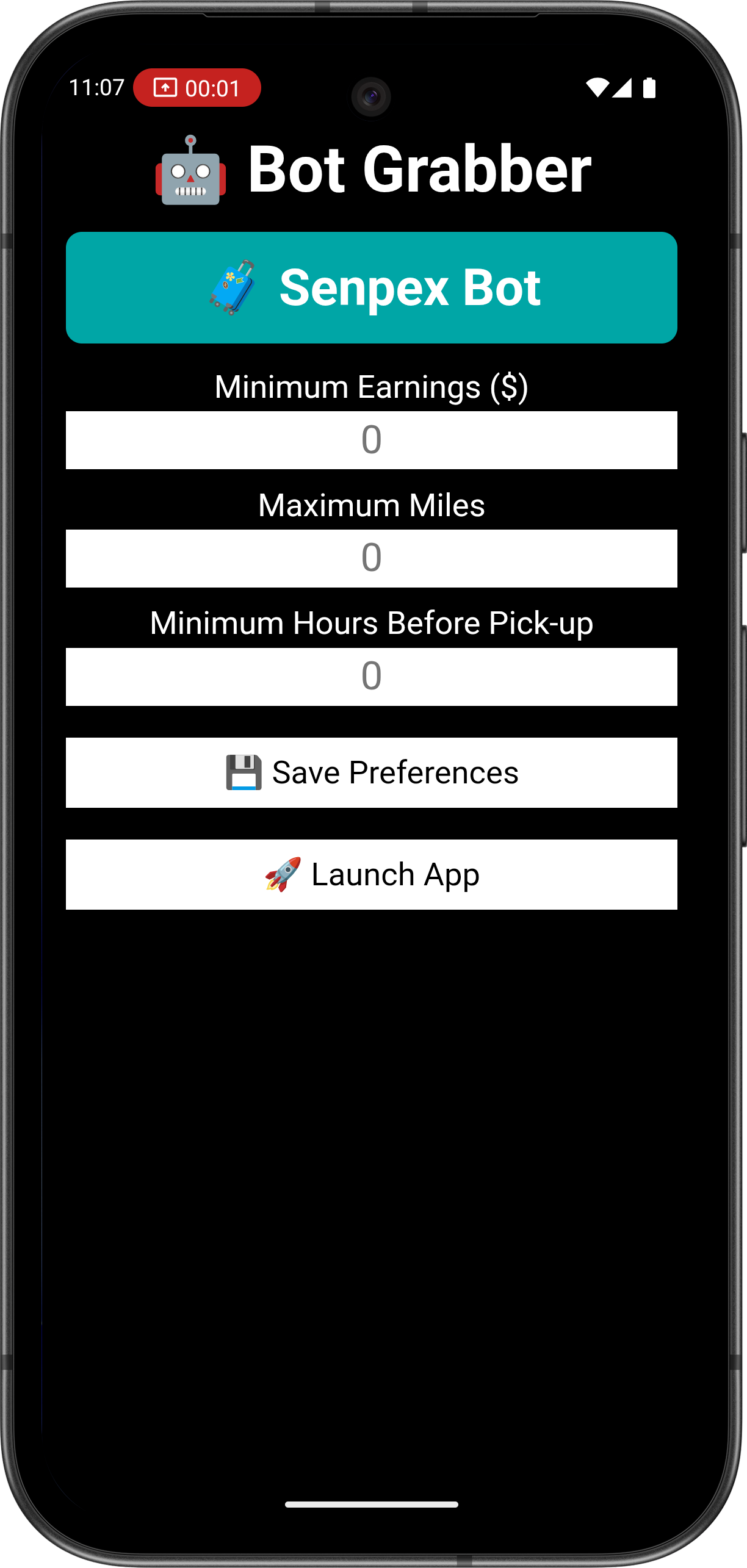 Uses Android native services to interact naturally with Senpex Courier app. Safe, secure, and undetectable by the platform.